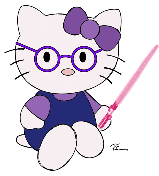 Tonight I am staying at a sister’s house and as I was trying to think of something to draw my sister suggested Hello Kitty because my niece (the kidlette) loves Hello Kitty (also is a fave of my niece the princess too) and so I did and I decided to personalize it with the kidlette’s glasses and her love for Star Wars.